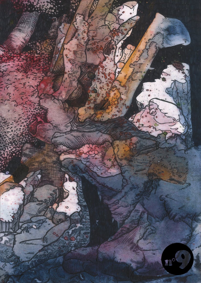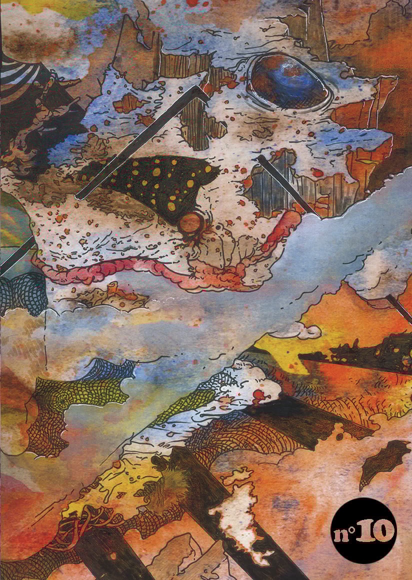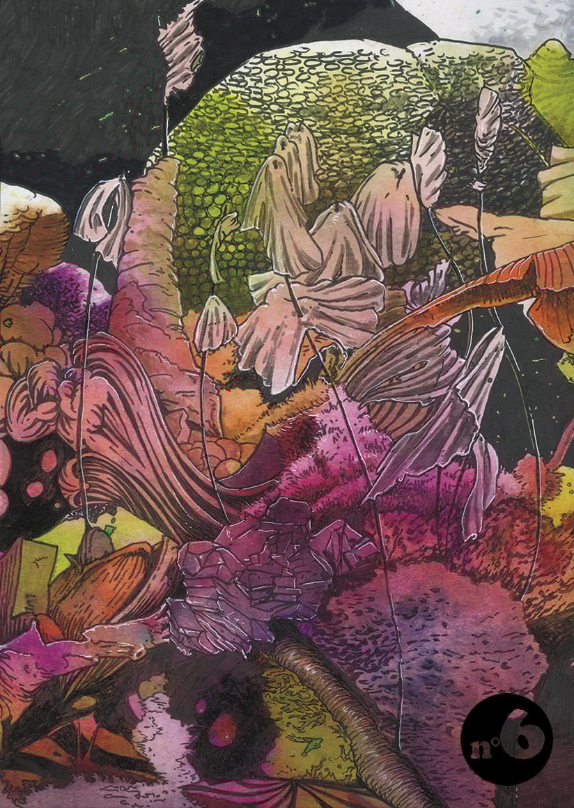Si tu prends des vieilles palettes d'aquarelle, que tu en imprimes des agrandissements à 400%, tu pourras dessiner par-dessus comme ça vient. C'est un peu comme trouver des images dans les courbes des nuages. Tu obtiendras peut-être un paysage psychédélique où de science-fiction. C'est ce que j'ai fait, et c'est devenu un projet de livre à paraître. Ces tirages de luxe (format A3, 180g/m2), sont imprimés en 15 exemplaires chacun, numérotés et signés. Leur vente me permettra de financer la production du livre en question.